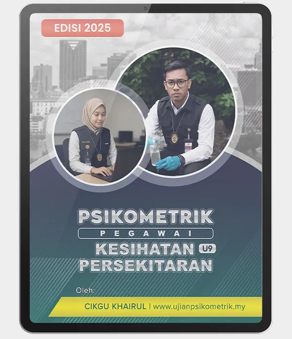 Untuk ujian psikometrik pegawai kesihatan persekitaran ini, cikgu highly recommended untuk anda baca ebook ini. Dalam ebook ini ada dibincangkan apakah personaliti yang cuba dicungkil dalam setiap soalan.